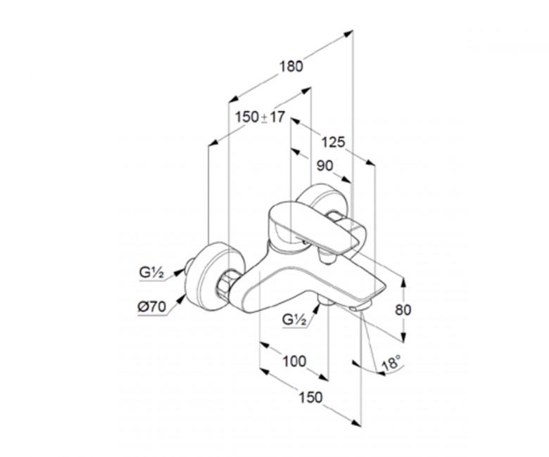 - однорычажный смеситель для ванны и душа DN 15