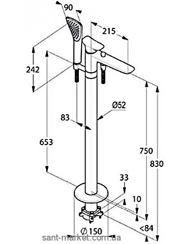 Смеситель однорычажный напольный (отдельностоящий) с душем Kludi коллекция Ambienta хром 535900575