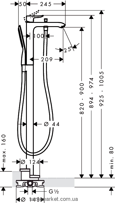 Смеситель однорычажный напольный (отдельностоящий) с душем Hansgrohe Axor Metris S хром 31471000
