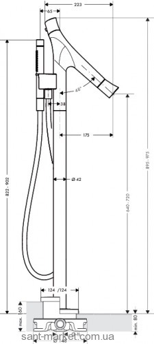 Смеситель с термостатом напольный (отдельностоящий) с душем Hansgrohe Axor Organic хром 12016000