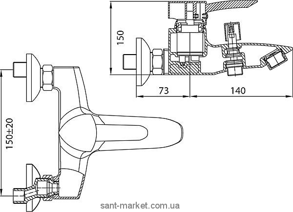 Смеситель однорычажный для ванны с коротким изливом Ferro коллекция Modena хром BTM1