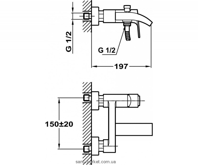 Смеситель однорычажный для ванны с коротким изливом Teka rоллекция Palma хром 651021200