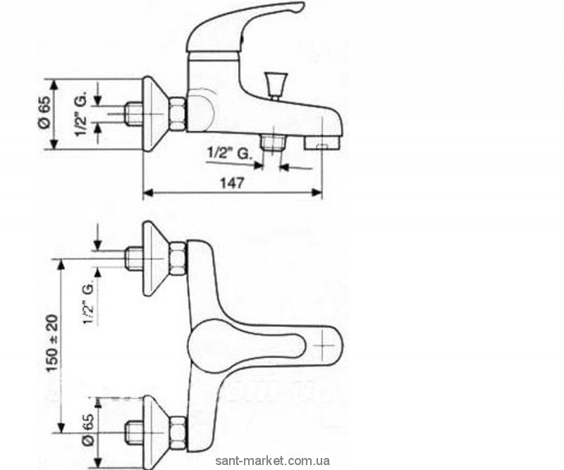 Смеситель однорычажный для ванны с коротким изливом EMMEVI коллекция Jolly хром CR10001GB