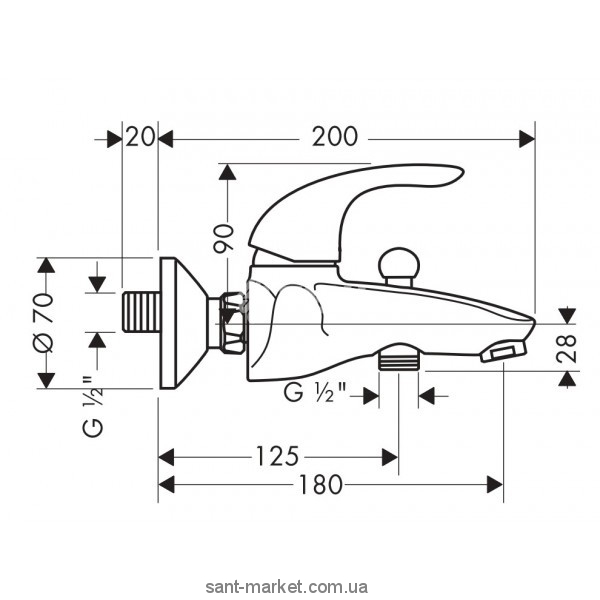 Смеситель однорычажный для ванны с коротким изливом Hansgrohe коллекция Avista хром 31748000
