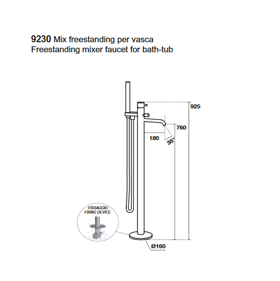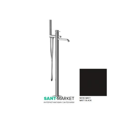 Смеситель для ванны отдельностоящий Kerasan Nolita однорычажный с ручным душем чёрный матовый 923031