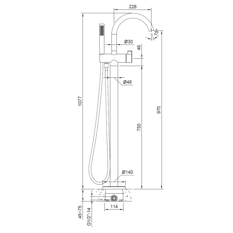 - высота смесителя 1077 мм
