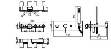 Вид - встраиваемый однорычажный смеситель для ванны с душевым гарнитуром (со встраиваемой частью)