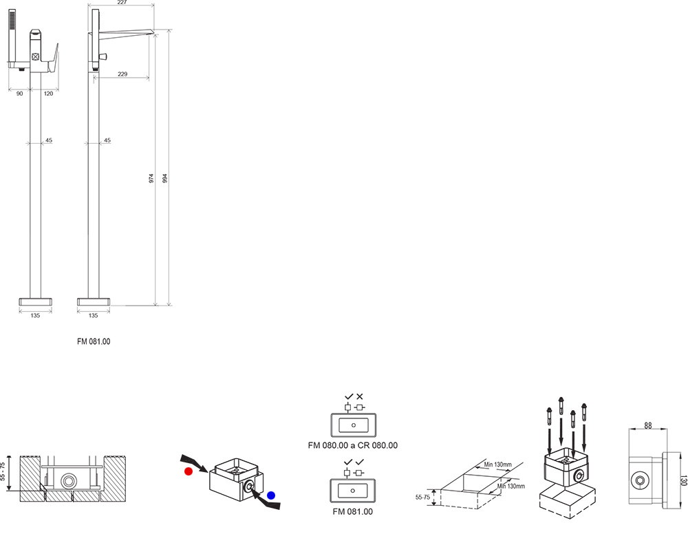 Высокая арматура и излив вместе с Вашей отдельностоящей ванной образуют симфонию красоты и пользы. Возможность установки напольного смесителя в пол предоставляет Вам полную свободу при создании индивидуальных решений для Вашей ванной комнаты.