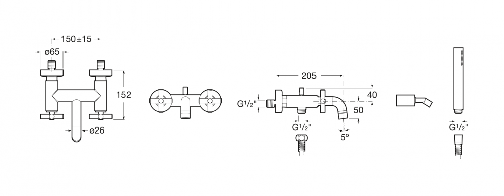 Смеситель для ванны Roca Loft двухвентильный с ручным душем