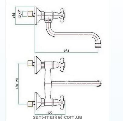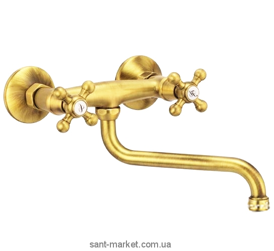 Смеситель двухвентильный с длинным изливом Fiore коллекция Margot золото 26064200 Gold