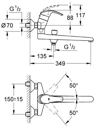 Смеситель однорычажный для ванны с длинным изливом Grohe коллекция Eurosmart хром 33116001