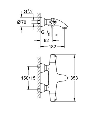 Смеситель с термостатом двухвентильный с коротким изливом Grohe коллекция Chiara хром 34070000