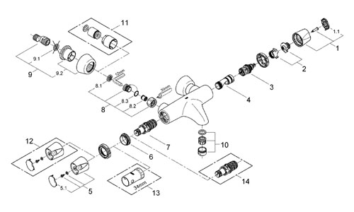 Смеситель с термостатом двухвентильный Grohe коллекция Grohtherm 3000 хром 34185000