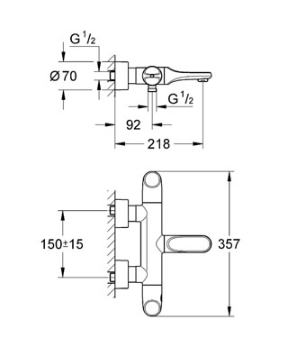 Смеситель с термостатом двухвентильный для ванны Grohe коллекция Veris хром 34327000