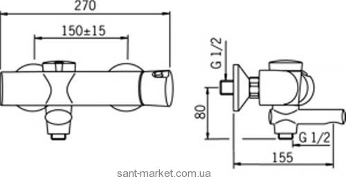 Смеситель с термостатом двухвентильный для ванны Oras коллекция Eterna хром 6375U