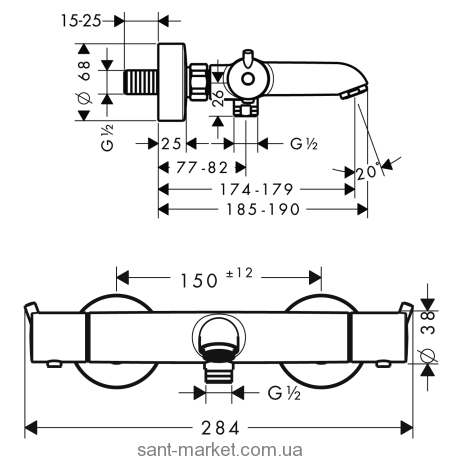 Смеситель с термостатом двухвентильный Hansgrohe коллекция Ecostat S хром 13245000