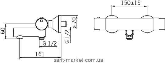 Смеситель с термостатом двухвентильный для ванны Oras коллекция IL Bagno Alessi One хром 8575U