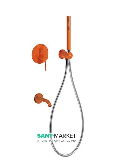 Смеситель для ванны Tres Study colors встроенный с ручным душем оранжевый 26218003TNA