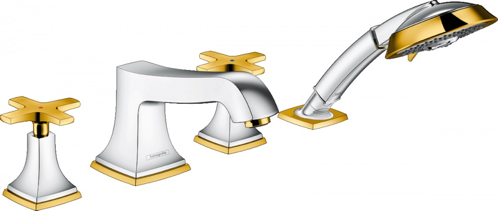 Смеситель двухвентильный на борт ванны с душем Hansgrohe коллекция Metropol Classic хром/золото 31449090