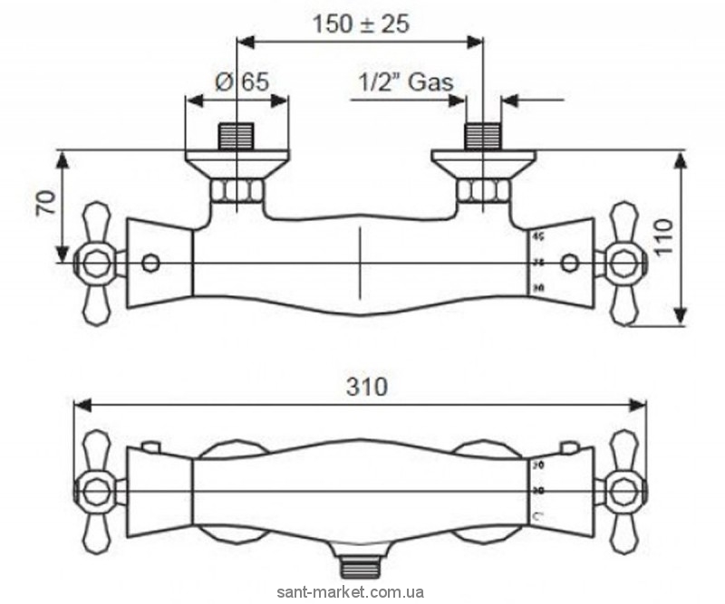 Смеситель для душа настенный двухвентильный с термостатом EMMEVI Deco Classic бронза BR12300