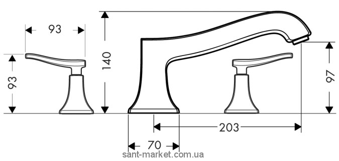 Смеситель двухвентильный на борт ванны Hansgrohe коллекция Metris Classic хром 31313000