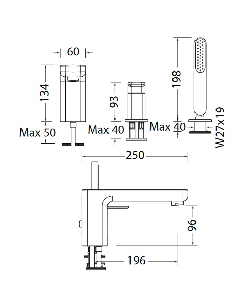 Смеситель на борт ванны Eurorama Tono с ручным душем хром