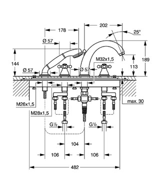 Смеситель двухвентильный на борт ванны с душем Grohe коллекция Sinfonia хром 25033000