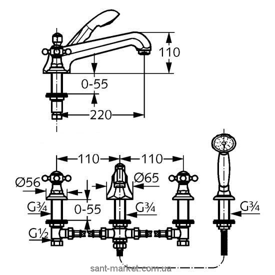 Спешите купить Смеситель двухвентильный на борт ванны с душем Kludi коллекция Adlon хром/белый 515250520 по акционной цене.