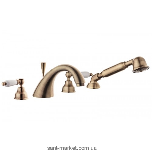 Смеситель двухвентильный на борт ванны с душем EMMEVI коллекция Deco Ceramic бронза BR121120