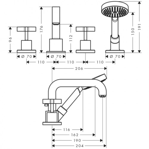 Смеситель двухвентильный на борт ванны с душем Hansgrohe коллекция Axor Citterio хром 39453000