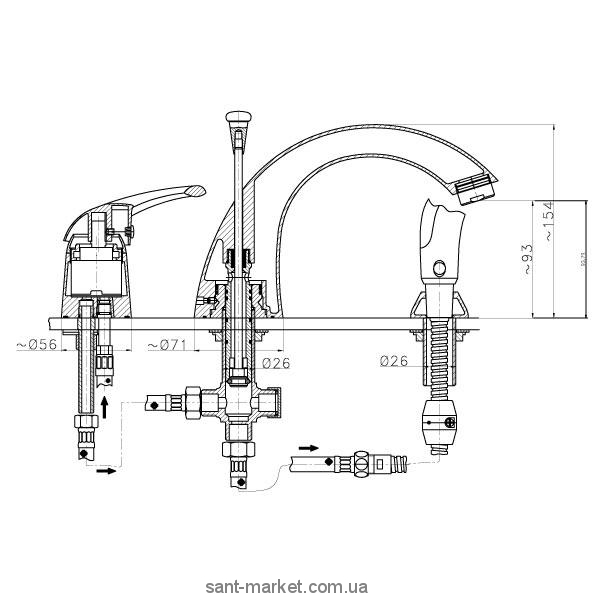 Смеситель однорычажный на борт ванны с душем Ferro коллекция Milano хром BRM11A