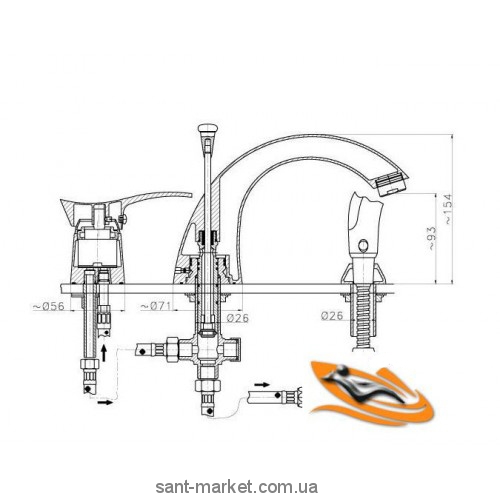Смеситель однорычажный на борт ванны с душем Ferro коллекция Werona хром BTW11A