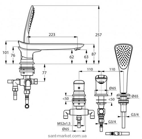 Спешите купить Смеситель однорычажный на борт ванны с душем Kludi коллекция Ambienta хром 534470575 по акционной цене.