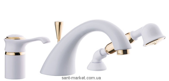 Смеситель однорычажный на борт ванны с душем EMMEVI коллекция Tiffany белый/золото BO60120