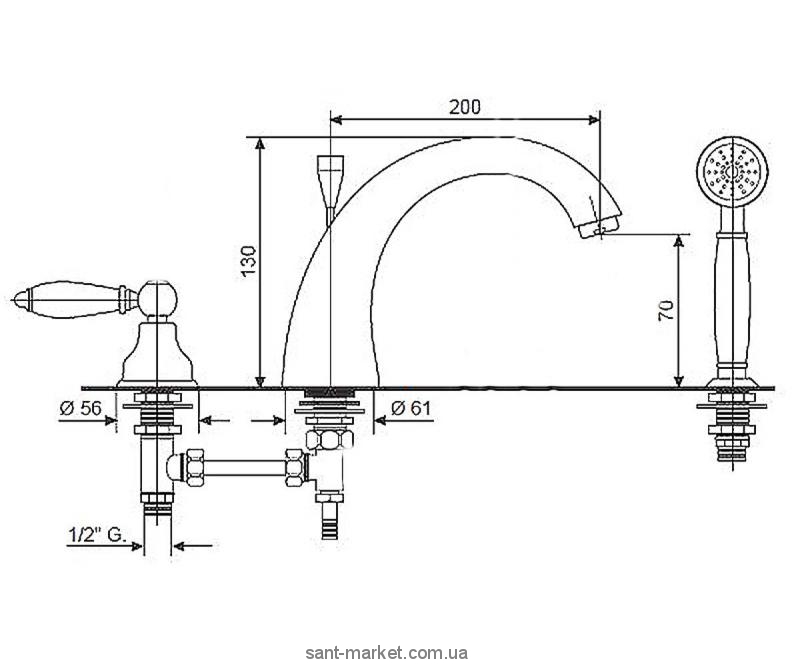Смеситель однорычажный на борт ванны с душем EMMEVI коллекция Tiffany хром/золото CO60120
