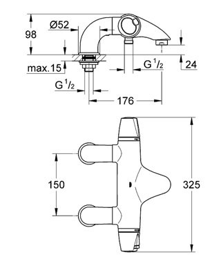 Смеситель с термостатом двухвентильный на борт ванны Grohe коллекция Grohtherm 3000 хром 34187000
