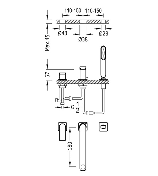 Смеситель на борт ванны Tres Loft-Tres с ручным душем хром