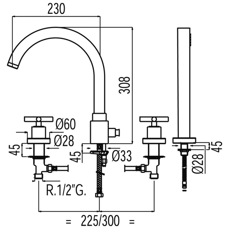 Смеситель на борт ванны Tres Max-Tres двухвентильный хром 163145