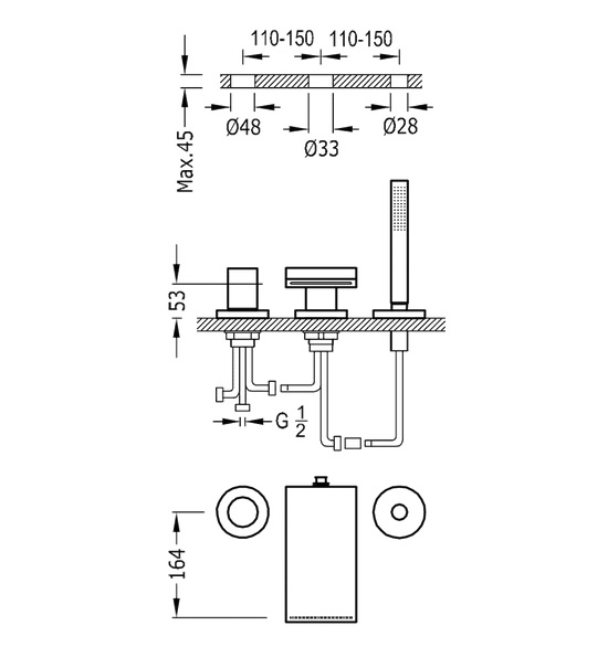 - Однорычажный смеситель для борта ванны с каскадным изливом
