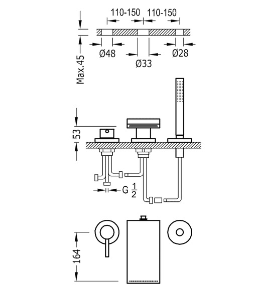 - Однорычажный смеситель для борта ванны с каскадным изливом