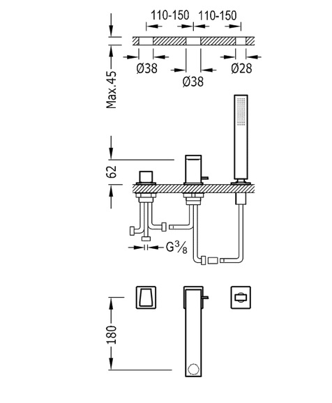 Смеситель на борт ванны Tres Slim-Tres с ручным душем хром 20216104