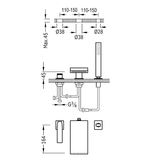 - Однорычажный смеситель для борта ванны с каскадным изливом