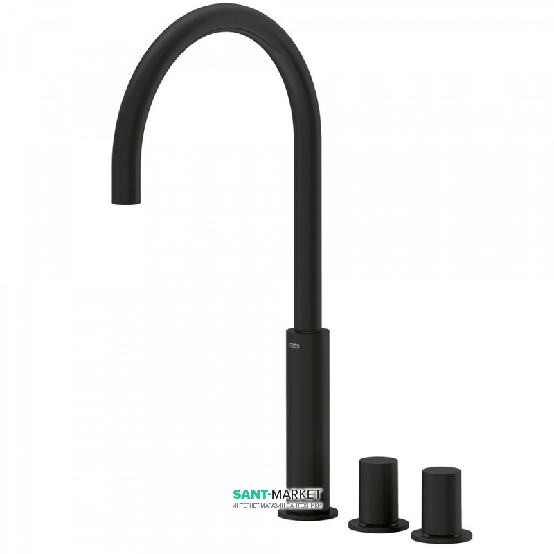 1) Смеситель на борт ванны Tres Study colors двухвентильный черный матовый