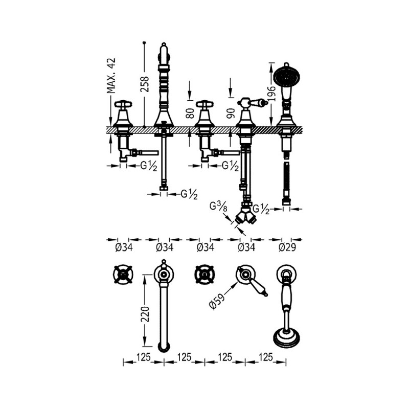1) Смеситель на борт ванны Tres Tres-Сlasic