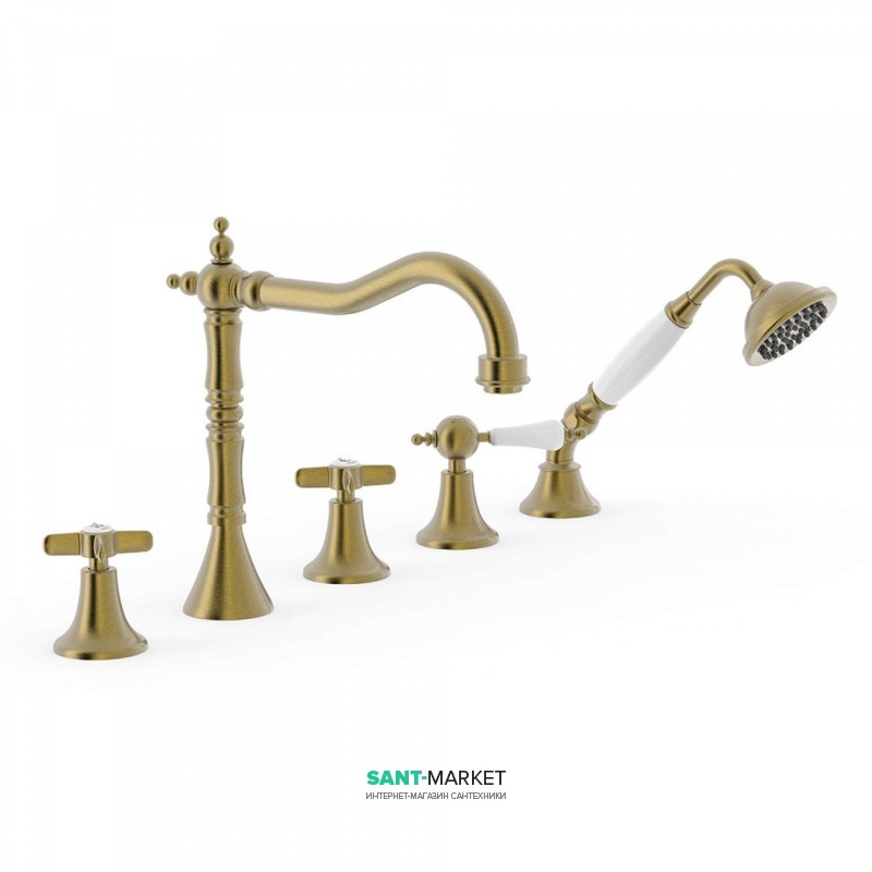 Смеситель на борт ванны Tres Tres-Сlasic с ручным душем состаренная латунь матовая