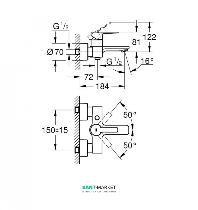 Смеситель однорычажный для ванны с коротким изливом Grohe Lineare суперсталь 33849DC1