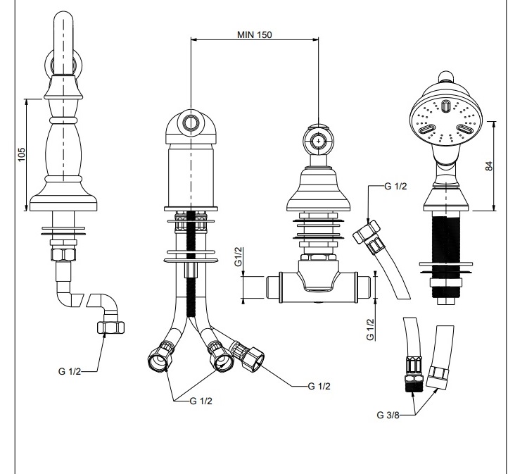 Смеситель однорычажный на борт ванны RESP CAESAR с душем хром 150.378.308 CR