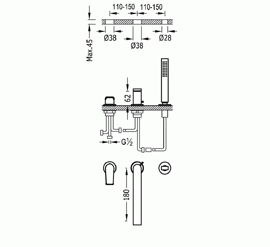 Смеситель однорычажный на борт ванны с душем Tres Project-Tres хром 21116101