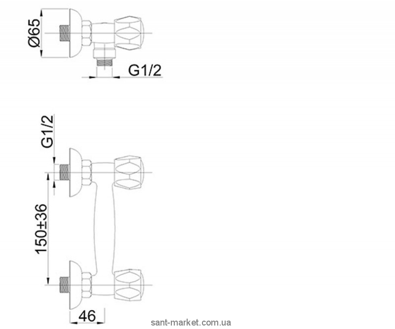 Смеситель для душа настенный двухвентильный Rubineta коллекция Rubin хром R50002