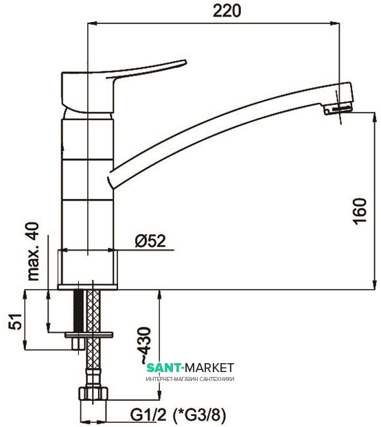 Смеситель для кухни Rubineta Static однорычажный А00008